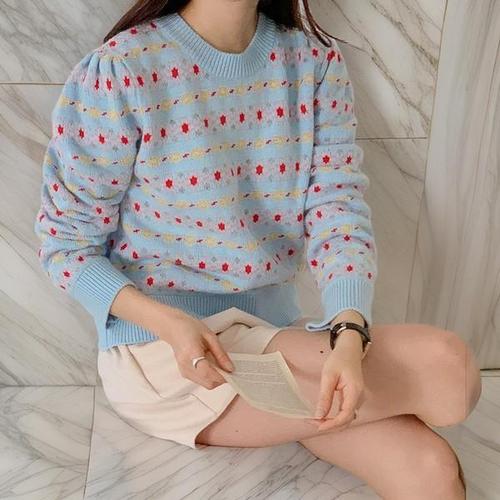[옷자락]여자 분홍색 노랑색 라운드 봄 나그랑 니트