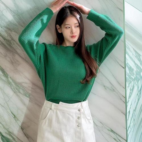 [다잇템]여자 라글란 라운드 분홍색 노랑색 SS 니트