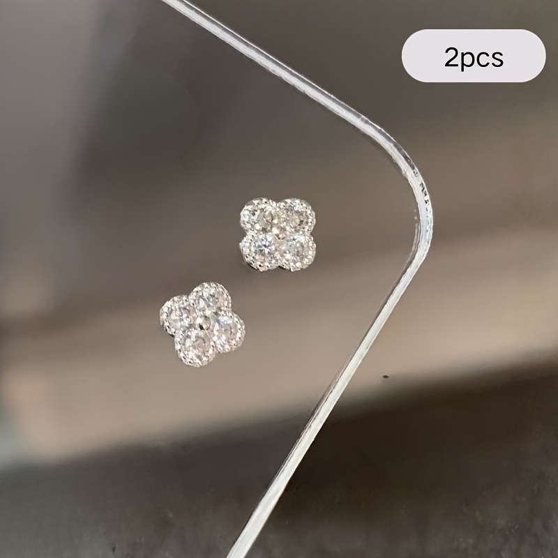 TEMU 2개입 고급스러운 글리터 4잎 클로버 네일 장식 | 유리 및 티타늄 스틸, Y2K 스타일 매니큐어 디자인용 네일 아트 용품|네일|네일아트|네일재료
