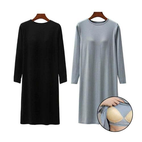 [셀럽하우스]여성 CGHA1761 노브라 긴팔 미디 캐주얼 원피스 2컬러 L2XL