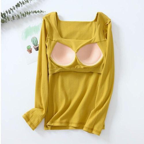 [브래지어 일체형 긴팔 티셔츠] 가슴 패드 캡내장 노브라티 브라탑 브라티 이너티 내복대용