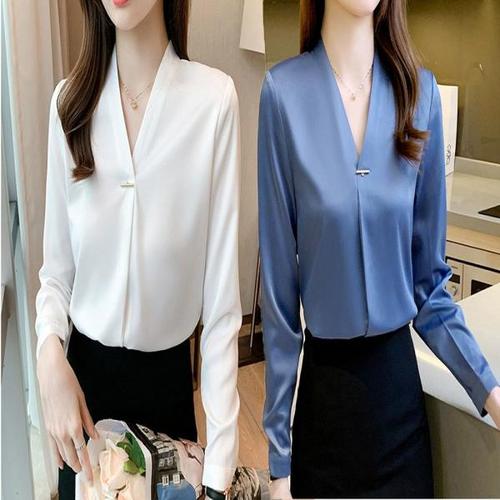 정상가 59000원ㅣ 에브리데이]페미닌 브이넥 노카라 긴팔 셔츠 (EB2BA003D)
