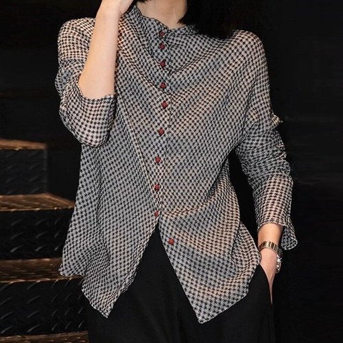 [엄지척]물결 라인 포인트 여성 셔츠 노카라 라운드 오피스룩_19643933_667501