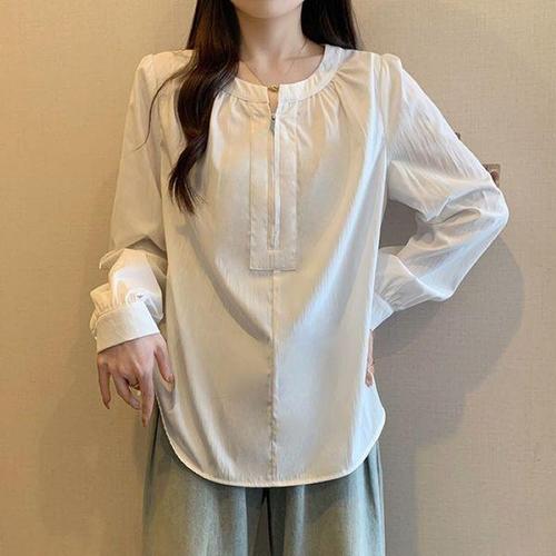 [룽스]스타일 여성데일리셔츠 긴팔 셔츠 노카라 블라우스
