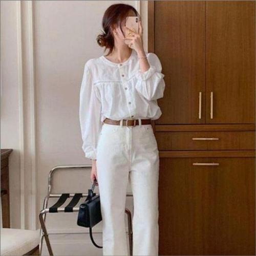 [신상오픈런]여성 무지 펀칭 노카라 긴팔 셔츠 블라우스