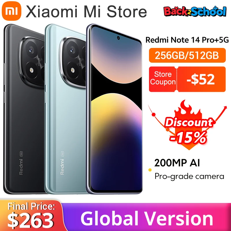 글로벌 버전 샤오미 레드미 노트 14 프로 + 5G 스마트폰, 200MP AI 카메라, 스냅드래곤®하이퍼차지 6.67 AMOLED 디스플레이, 7s Gen 3, 120W
