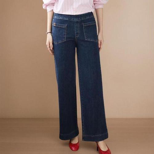 [신상오픈런]여성 세미와이드 스티치 노버튼 청바지 앞포켓 뒷밴딩