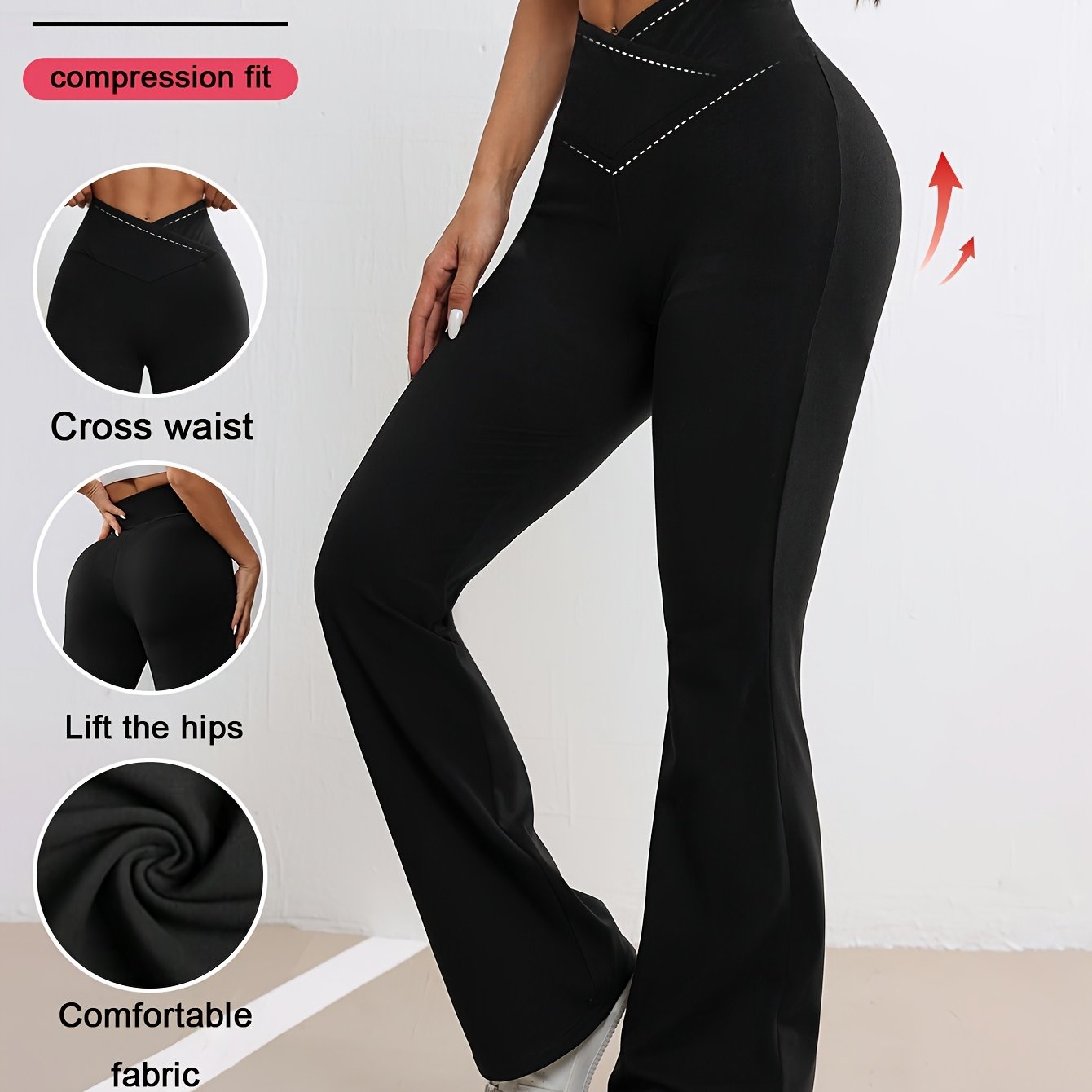 TEMU 여성 캐주얼 스포츠 트라우저, 플레어 팬츠, 단색, 피트니스 및 운동용, 여성 액티브웨어