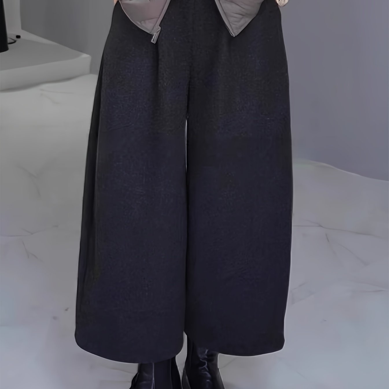 TEMU 여성용 우아한 와이드 레그 팬츠 포켓 포함 - 포근한 플리스 안감, 하이웨이스트, 블랙, 가을/겨울 캐주얼 또는 오피스웨어에 완벽, 편안하고 스타일리시, 오피스웨어 팬츠 | 우아한 와이드레그 팬츠 | 플리스 안감 팬츠