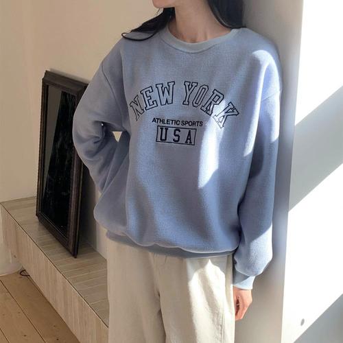 [옷자락]여성 일상복 캐주얼 뉴욕 자수 루즈핏 맨투맨