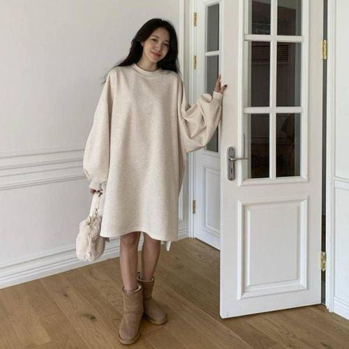 [다잇템]여자 골지 넥라인 쁘띠 무지컬러 언발 원피스