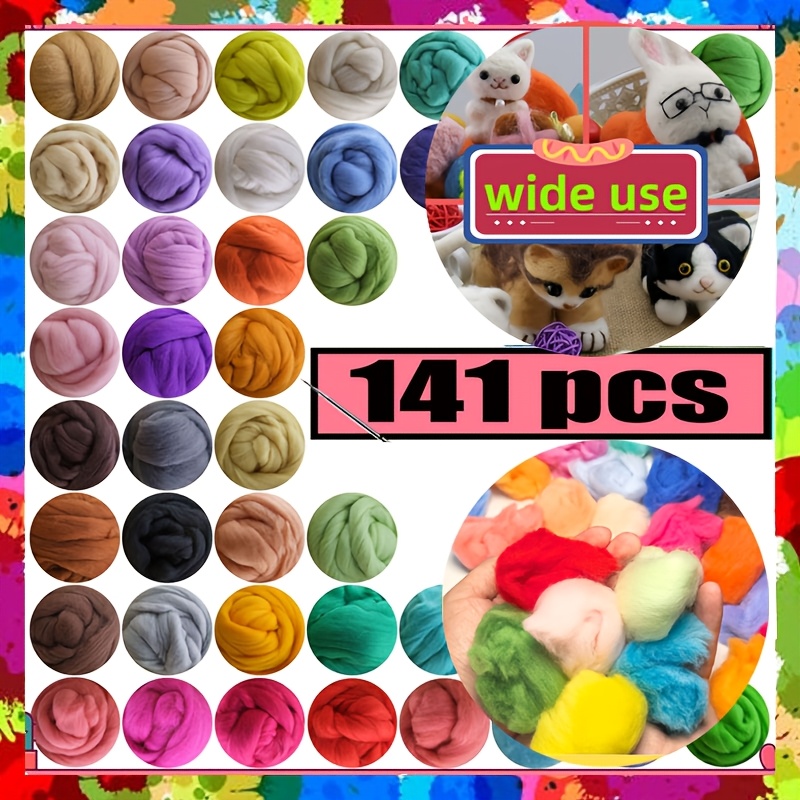 TEMU 141피스 니들 펠트 세트, 37가지 색상의 울 로빙 포함, 초보자에게 적합, 펠트 동물 제작을 위한 펠트 도구 및 설명서 포함