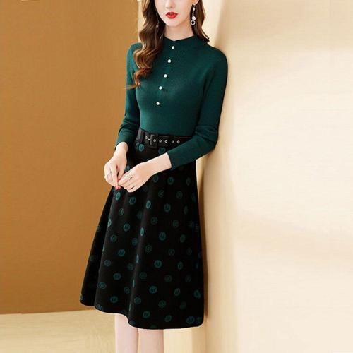 [셀럽하우스]은창)투 UNHL4256 카라 데일리 버튼 니트 보온 원피스 치마 롱