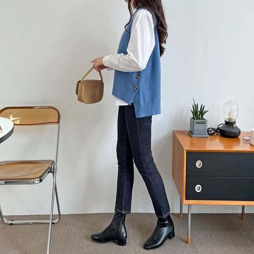 [셀럽하우스]에어리 XJLH1154 라운드넥 루즈핏 옆버튼 니트 조끼 221012