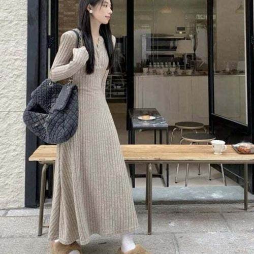 [셀럽하우스]롱원피스 XYJC4511 니트 데일리 단추 롱 클래식 여성 원피스 긴