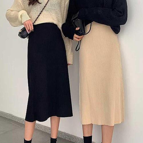 [셀럽하우스]니트골지뒷트임 YZWT1999 롱허리 밴딩 모던핏 여성스러운스커트