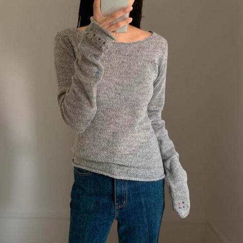 [신상오픈런]여성 가을 니트 롱슬리브 보트넥 울 긴팔 티셔츠