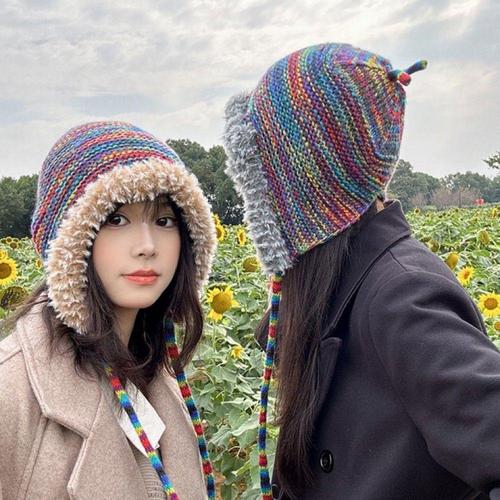 겨울 방울모자 털 니트 캡 여성 모자 WFMBHTI