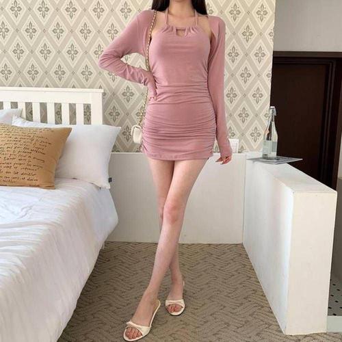 롱니트 뷔스티에 쉬폰 세트 시스루 미니원피스 WFKOINR