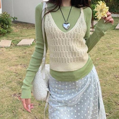 조끼 민소매 니트 뷔스티에 여자 여름 그물 레이어드 WFLQ85E