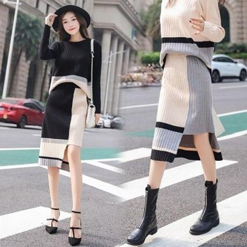 [아리엘스타일]배색니트 캐주얼셋업 니트세트 렌다이투피스