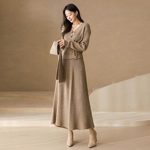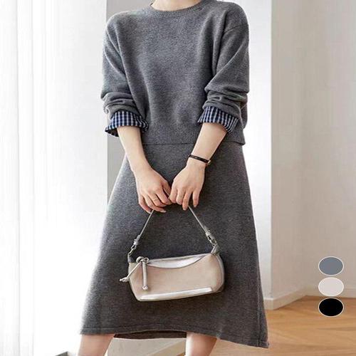 [엄지척]여성 트윈룩 니트 치마 세트 가을 투피스 데일리룩_19678374_667501