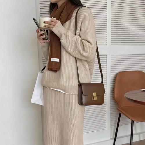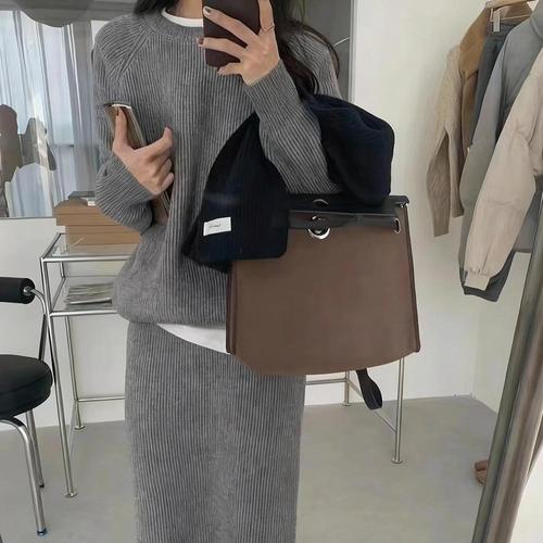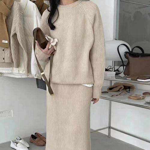 [옷자락]여성 가을 오버사이즈 긴팔 니트와 치마 세트