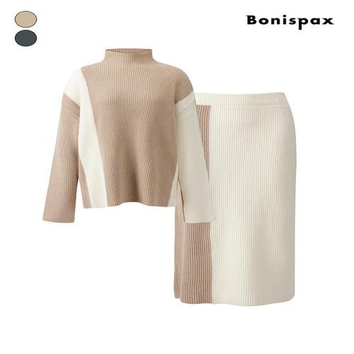 [보니스팍스]모던 배색 골지 니트 스커트 세트 (XPBST001M0)