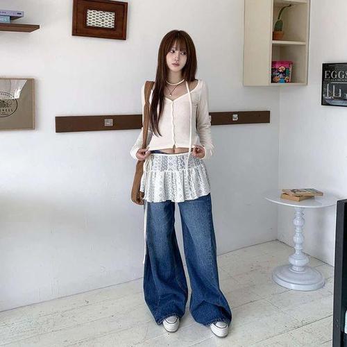 [옷자락]여자 뜨개 프릴 스트랩 레이어 니트 미니 스커트