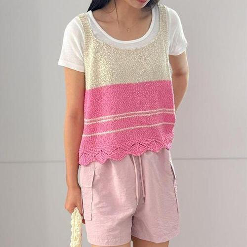 [옷자락]여성 여름 니트 배색 부클 스카시 나시 조끼