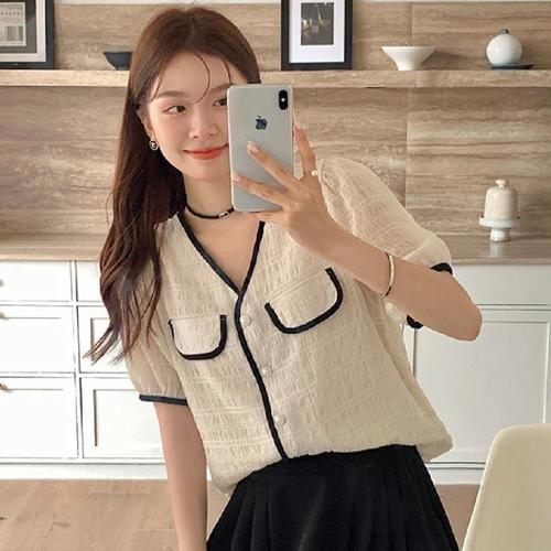 단추 캐릭터 캐쥬얼 니트 블라우스 조끼 와이셔츠 셔츠 남방 원피스:-블라우스단추