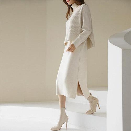 [스타일온미][스타일온미] 퓨어 레이온 꽈배기 조끼 SET 니트 원피스
