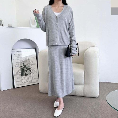 [셀럽하우스]여성 JKJY4875 브이 기본 가디건 롱니트스커트 상하의 SET