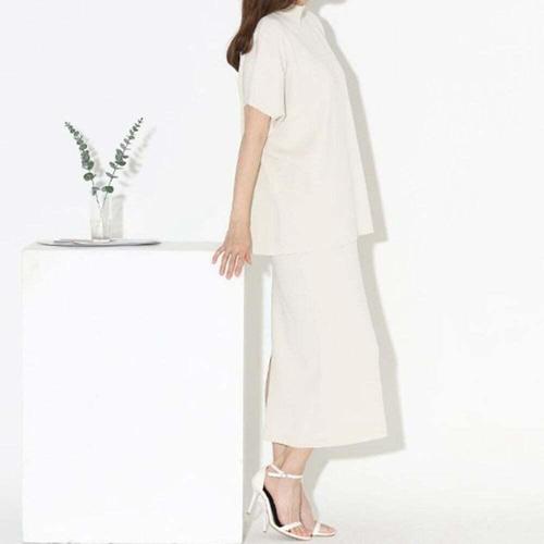 [셀럽하우스]롱 PTSY6647 스커트 반팔 투피스 세트 JSC24062204 롱 롱 니트