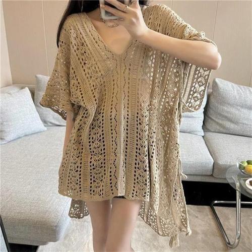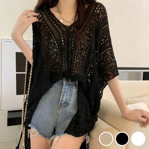 [셀럽하우스]여성 MNUI3115 그물니트 여름 브이넥 오버핏 시스루 커버업