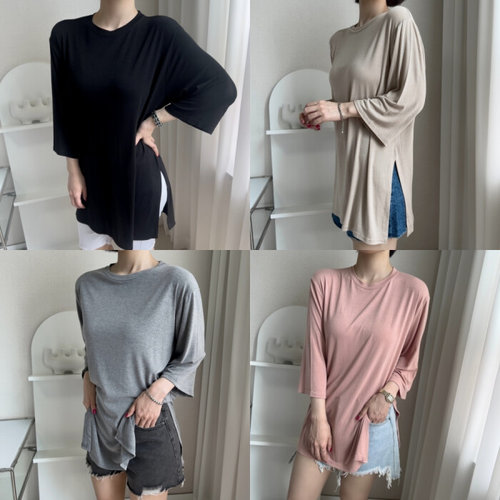 설세라 / (한장더) 요가상의긴팔 커버업 롱 옆트임티셔츠
