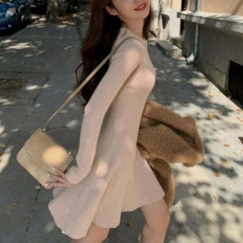 [셀럽하우스]여성 GPUZ6892 캐주얼 슬림한 플레어 골지 니트 원피스