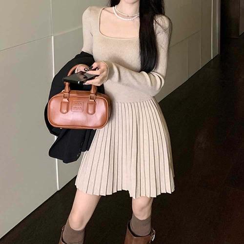 [셀럽하우스]플레어 KGKF7305 스커트 스퀘어넥 골지 니트 원피스