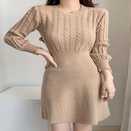 [엄지척]여성 긴팔 꽈배기 니트 플레어 허리 밴딩 미니 원피스_19913210_667501