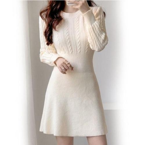 여성 로맨틱 라운드넥 A라인 플레어 골지니트 원피스