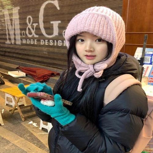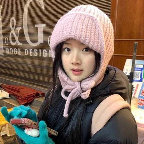 해외 여행 나들이 겨울 방한 용 귀도리 니트 모자 WFKN4MY