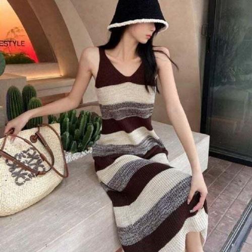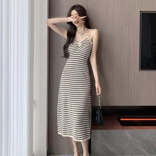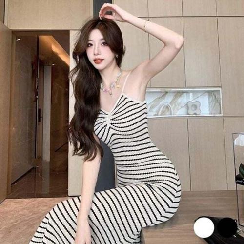 [셀럽하우스]끈나시 UWHL5147 잔스트라이프 캐주얼 원피스 여자 필수템 니트