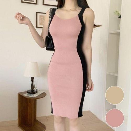 [셀럽하우스]배색 BGDM1878 민소매 캐주얼 니트 원피스 필수템
