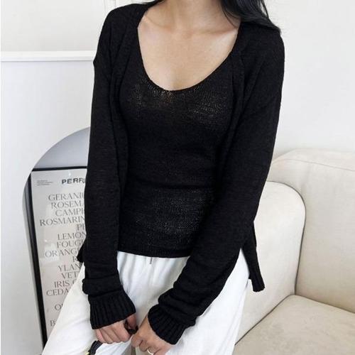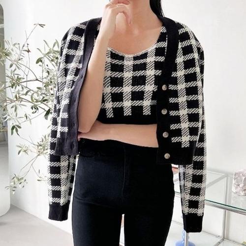 [엄지척]여자 블랙 브이넥 데일리 니트 나시 가디건 세트_19791929_667501