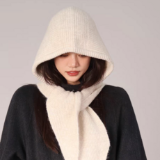 니트 머플러 겸용 후드모자 따뜻한 겨울 방한모 일체형 넥워머 목도리 LAPFA592