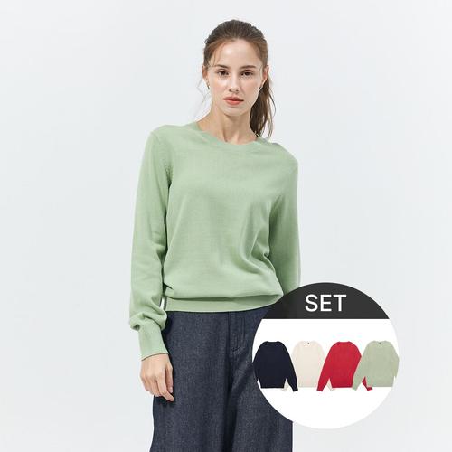 여성 소프트 배색 컬러 더블립 라운드넥 긴팔 니트 티셔츠 4종세트