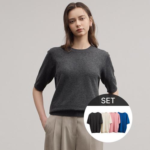 [리베레츠][리베레츠]여성라운드넥울반팔니트4종세트