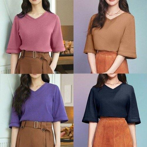 [도로시양장점]YUMMYKNIT 꼼드코튼100 어텀 V넥 7부니트 4종세트