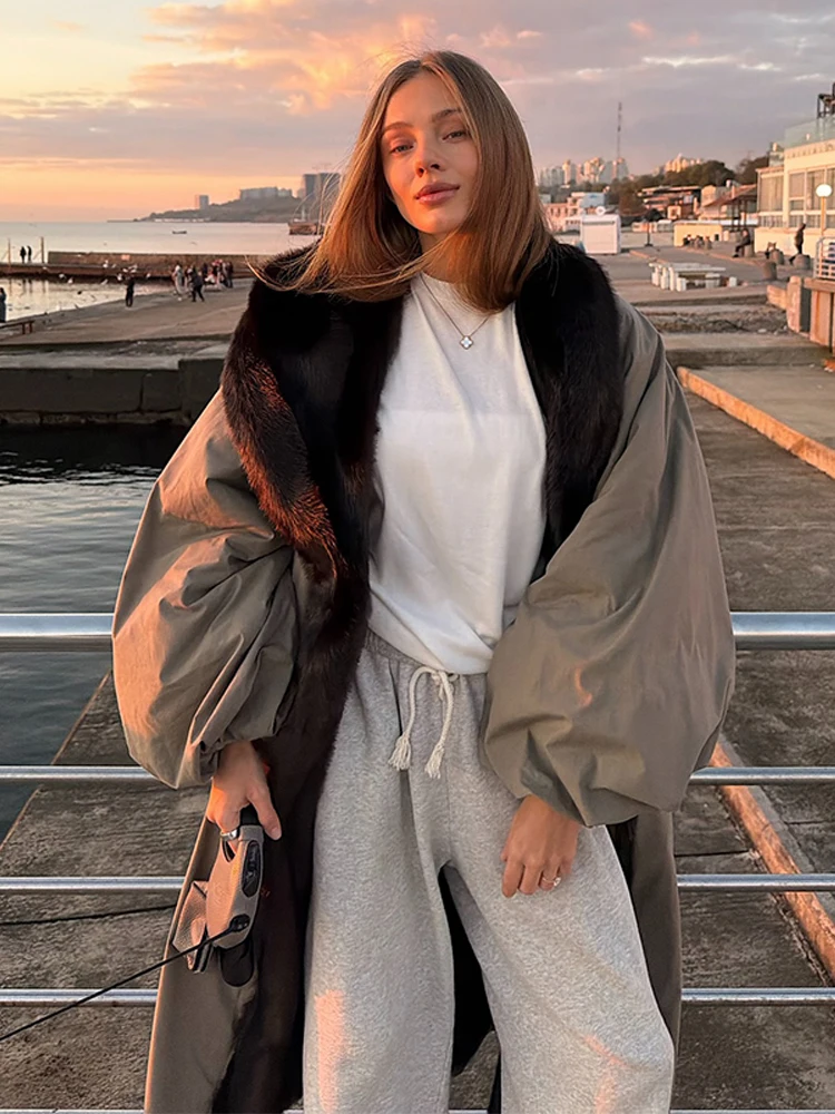 여성용 캐시미어 칼라 복합 가죽 재킷, 편안한 캐주얼 하이 칼라 재킷, Y2k 하이 퀄리티, 가을 및 겨울 신상