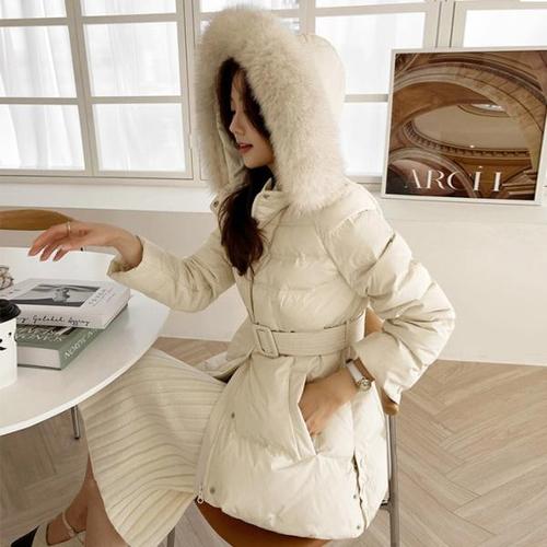 플라스틱아일랜드 퍼 카라탈착 허리스트링 롱 패딩 점퍼 (PR4PZ064)